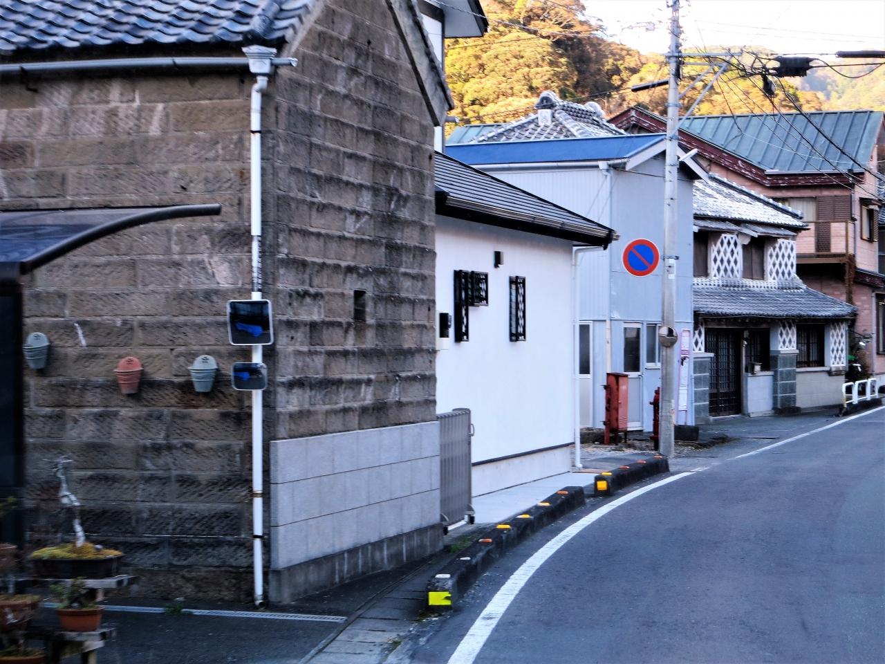伊豆石で建てた蔵でしょうか、沿道には古い建物が数多く残っています。 -