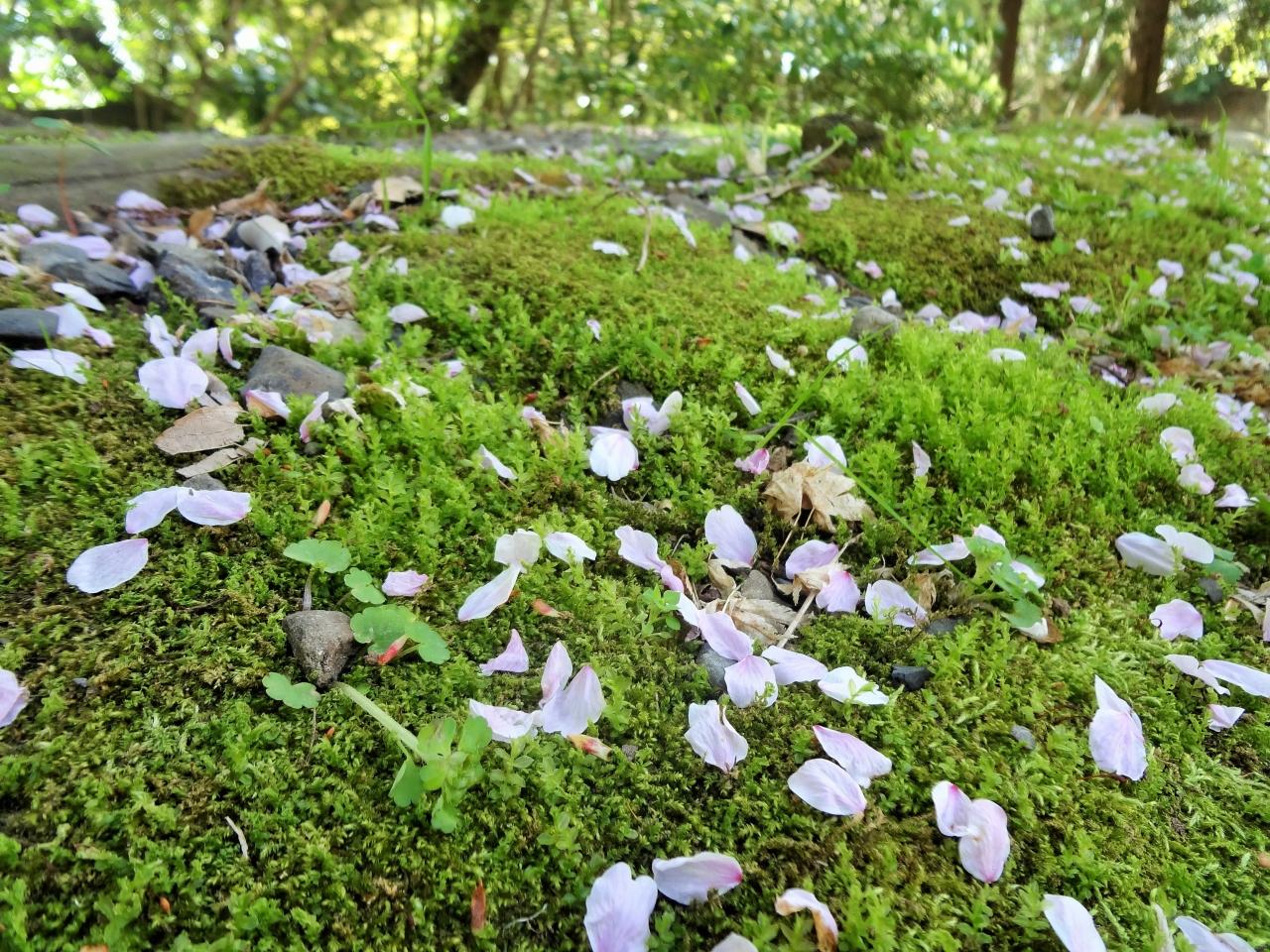苔の上の花びらがとってもきれい。