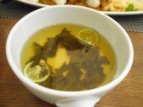 フィンガーボウルは一見、わかめスープのようです。ウェイトレスさんに言われなかったら飲んでいたかも(^^ゞ