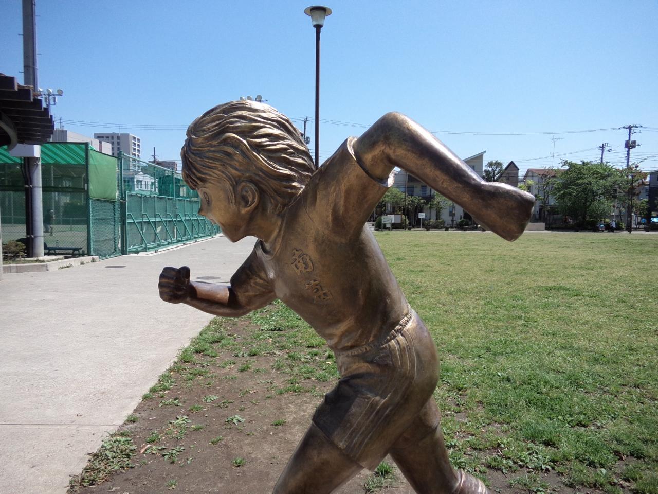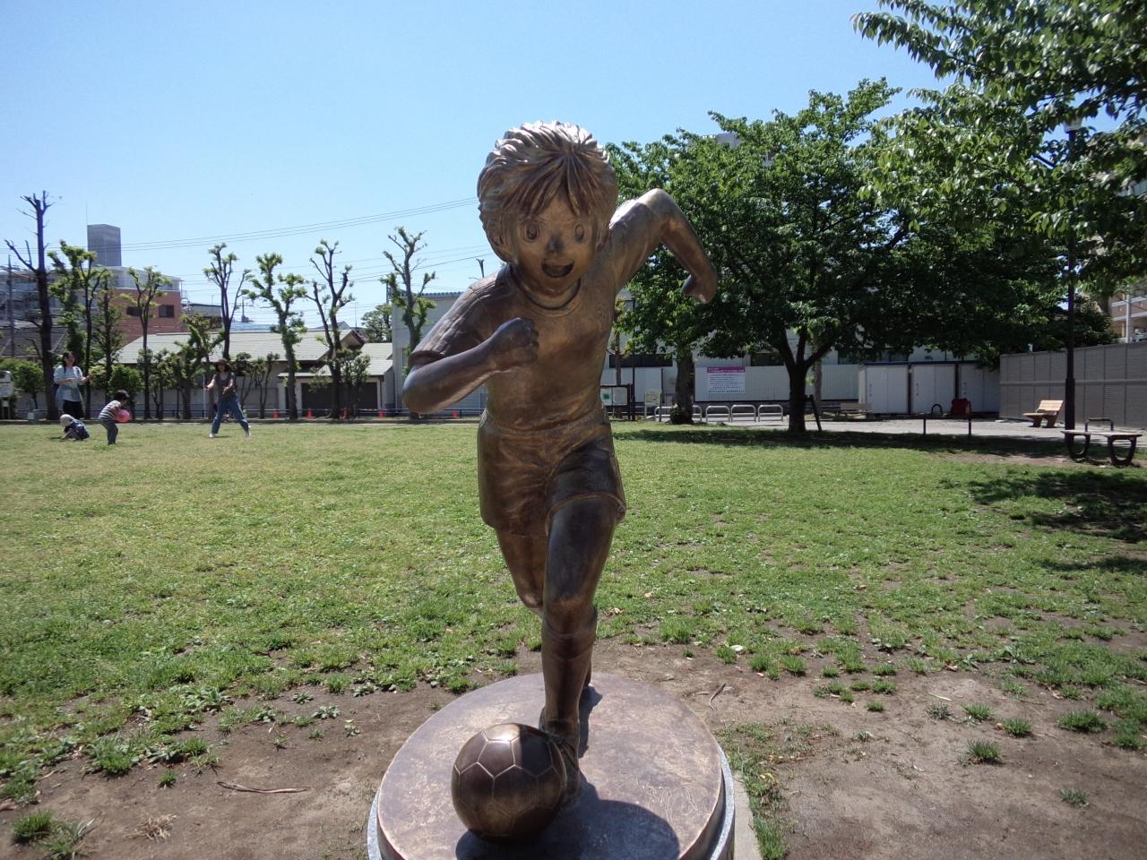 翼君の銅像はここと、ロベルト本郷と一緒のとヒールリフトしてる翼君と、南葛高校のツインシュートの翼君、計4体があります。