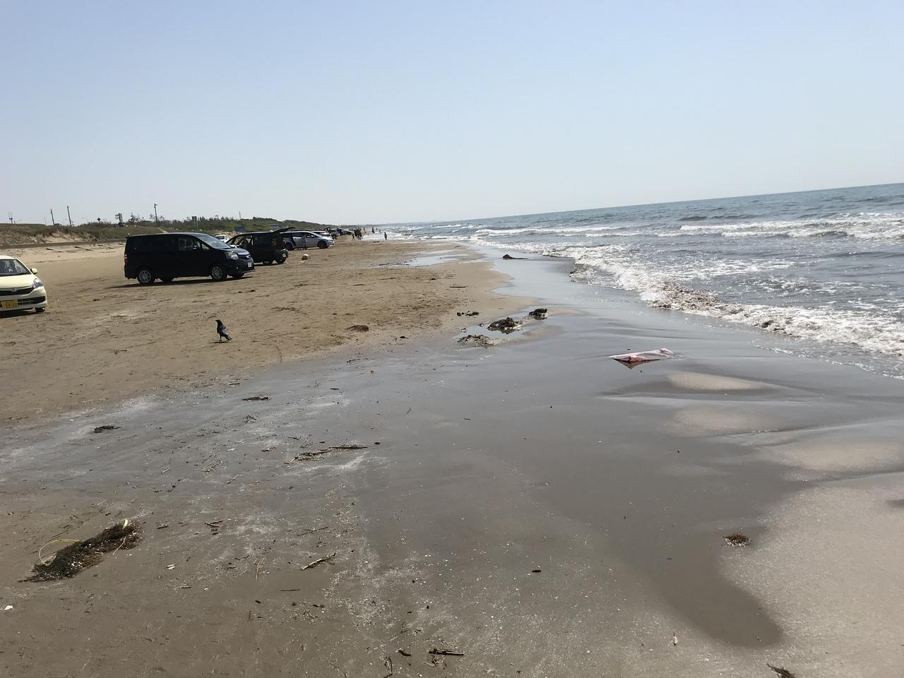 砂の粒がきめ細かく締まっており 海水を吸って舗装されたアスファルト道路のように固くなるので4WD車でなくても全然走れます。 -