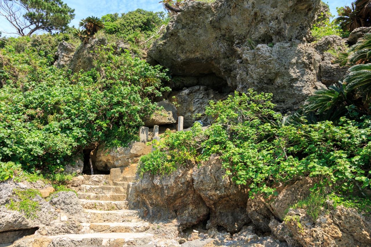 此処を登るとアマミチューの墓なのですが、地元のおばあちゃんが多くの荷物を抱えて登ったものの降りれなくなったので、荷物を持ってあげたりと手助けを・・。