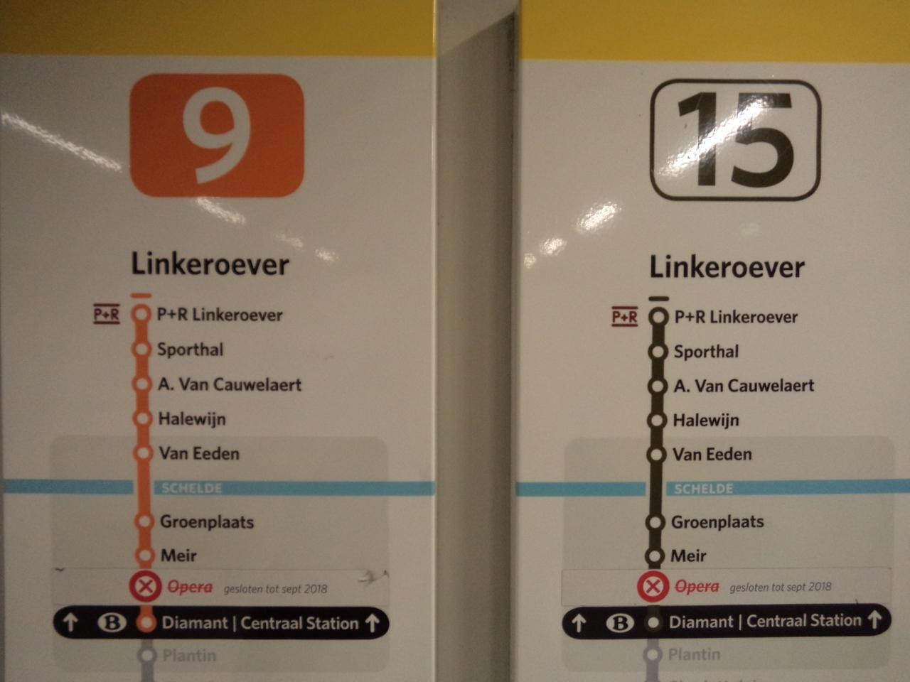 アントワープ市内のメトロは詳しく調べて来なかったのですが、9番と15番に乗ると、Groenplaats(グルン広場)駅まで行けます。