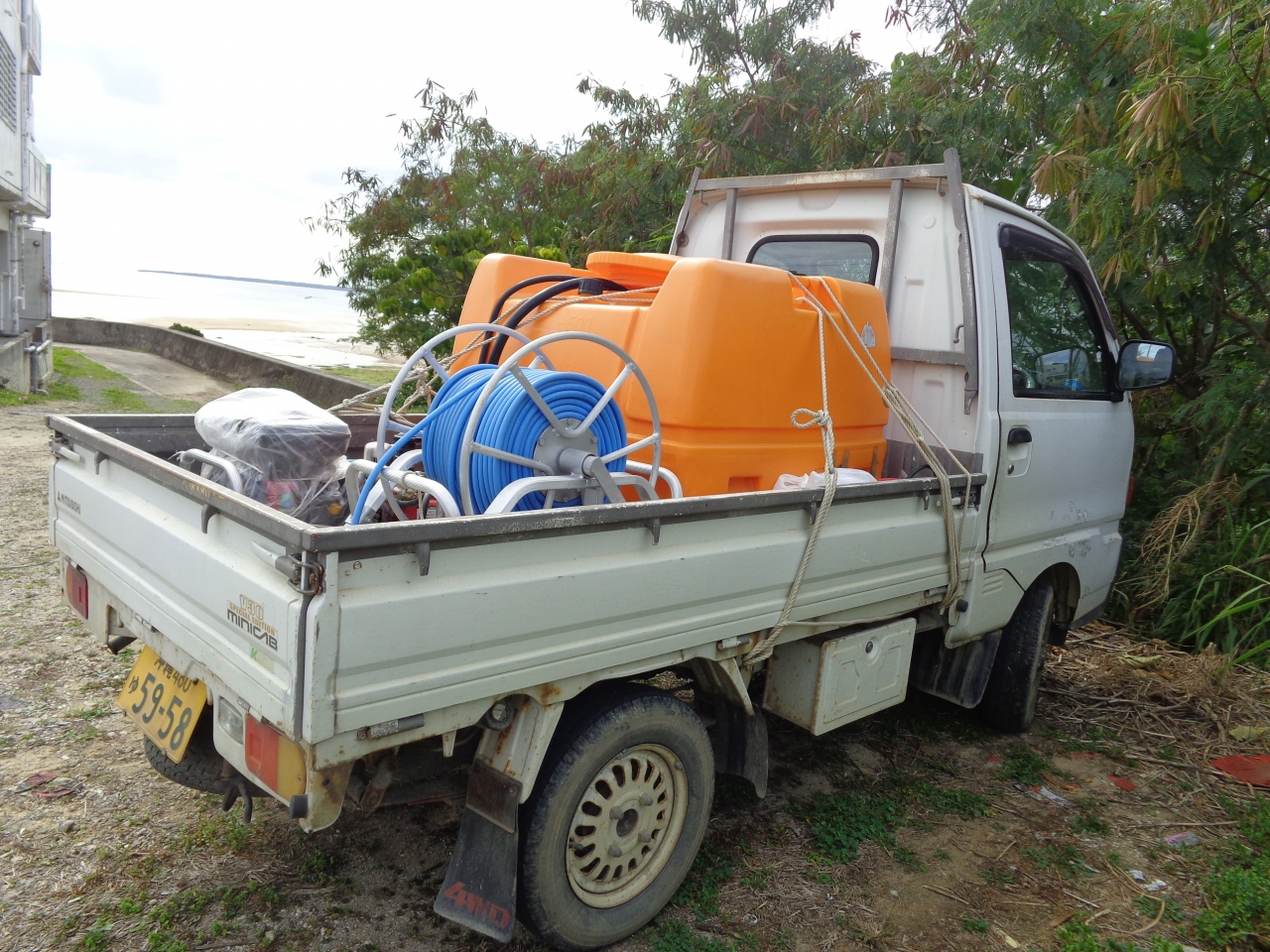 夏は雨が少ないうえに、雨が降っても溜まらなく、それに流れる小川もない 。野菜を育てるには、軽トラに水を積んできて散水するしか方法がないのです。また、野菜を狙う野鳥もいてネットも必要です。