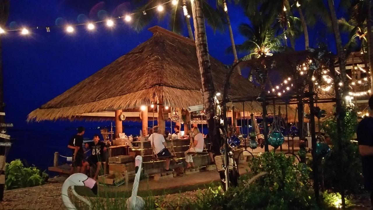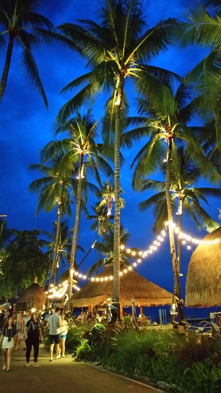 夕食後、ぶらぶら歩いて帰ります。フィッシャーマンズビレッジでは灯りが着き始めました。この海沿いの2階建てのお店は、昨年はありませんでしたね。ボープットはすごい勢いで発展しています。