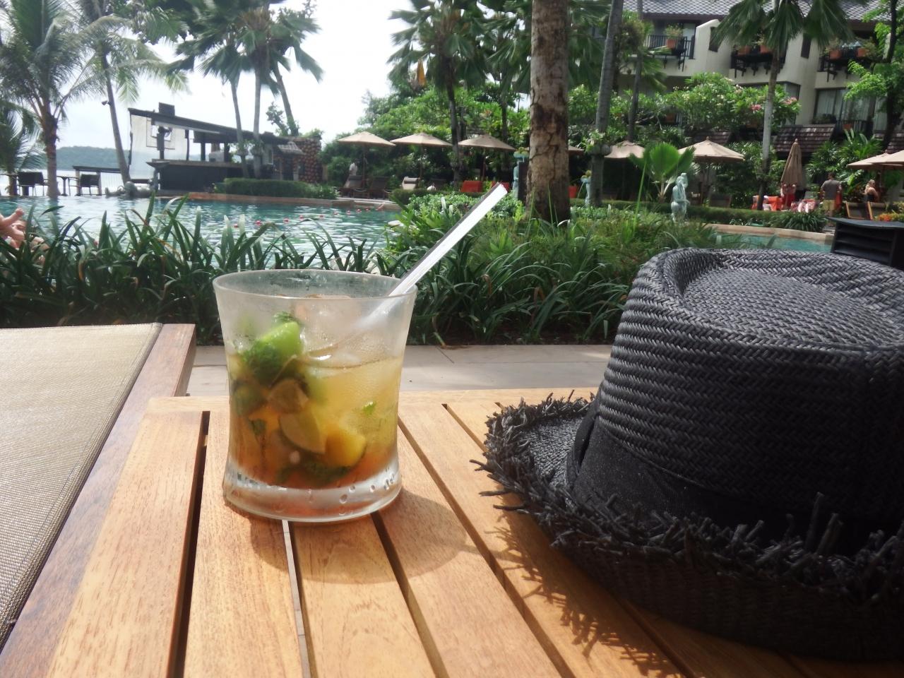 パドルボートで遊んだ後は、モヒートで乾杯!日差しが強くなってきて、暑い~