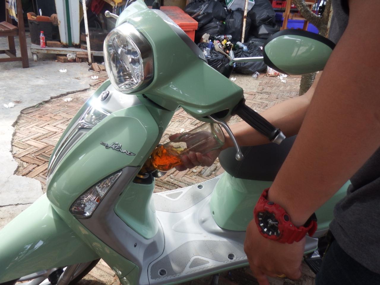 午後からはまたバイクをレンタルして、お出かけしました。レンタルバイク屋で給油してくくれたのですが、瓶でガソリンを入れました。(怖