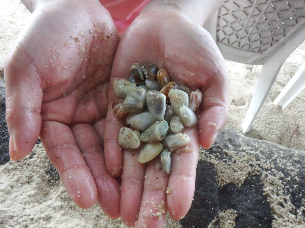 10分ほど掘ったでしょうか、貝が20個ほど取れました。持ち帰っても食べられないので、地元のおばちゃんにあげちゃいました。
