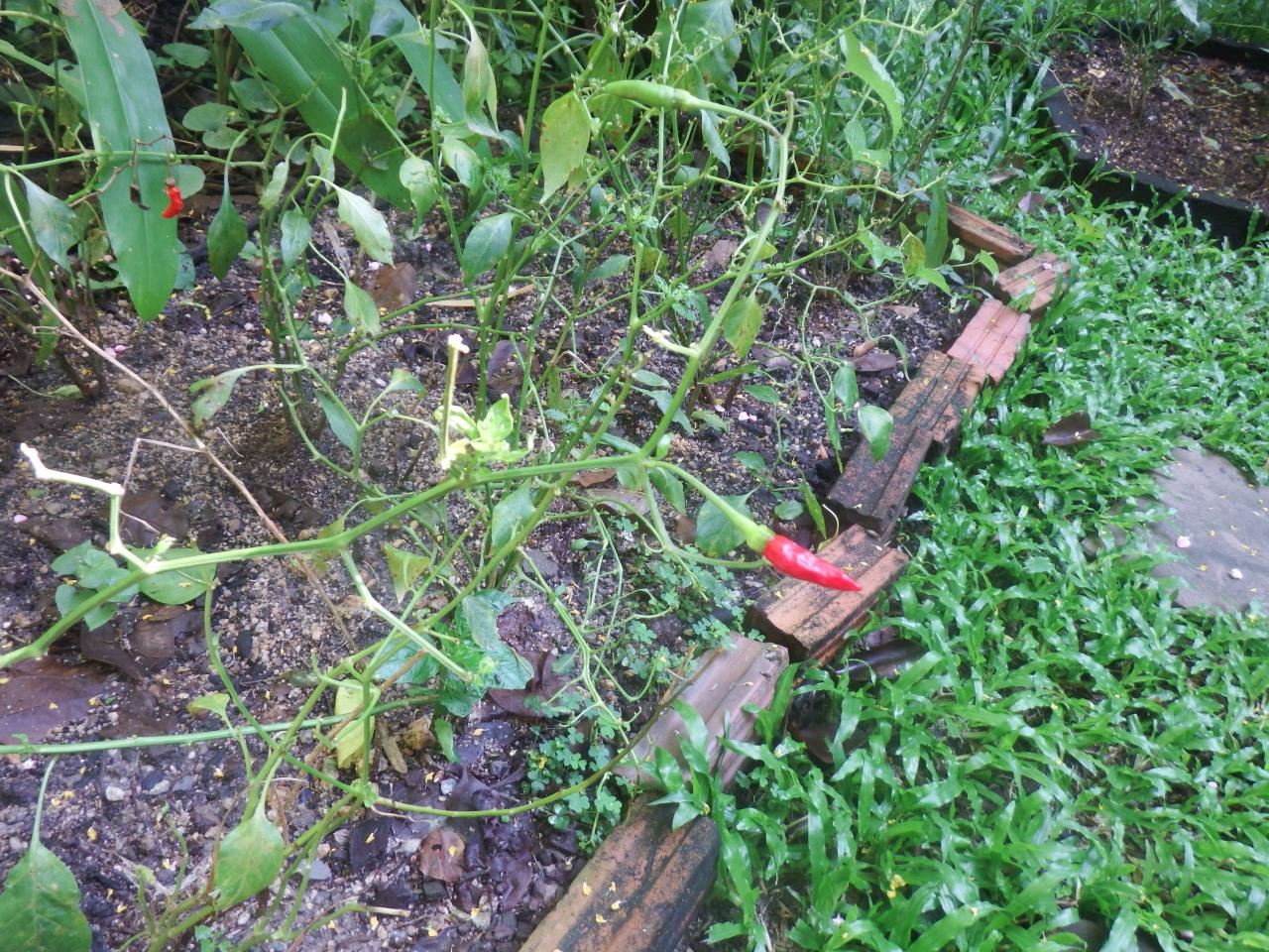 ジムの帰りに、ホテルのハーブガーデンを覗いてみました。唐辛子が真っ赤になっていました。