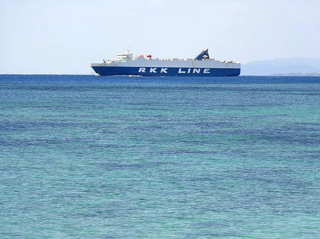 RKK LINE(琉球海運)は沖縄と石垣島との貨物船です。悪天候などで欠航すると生鮮食品などが不足します。