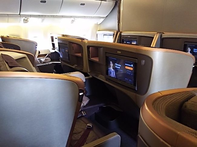 ファーストとビジネスクラスは前方のドアから乗りますが、初めての機材だったので通り過ぎてエコ席まで行ってしまいました(≧▽≦)