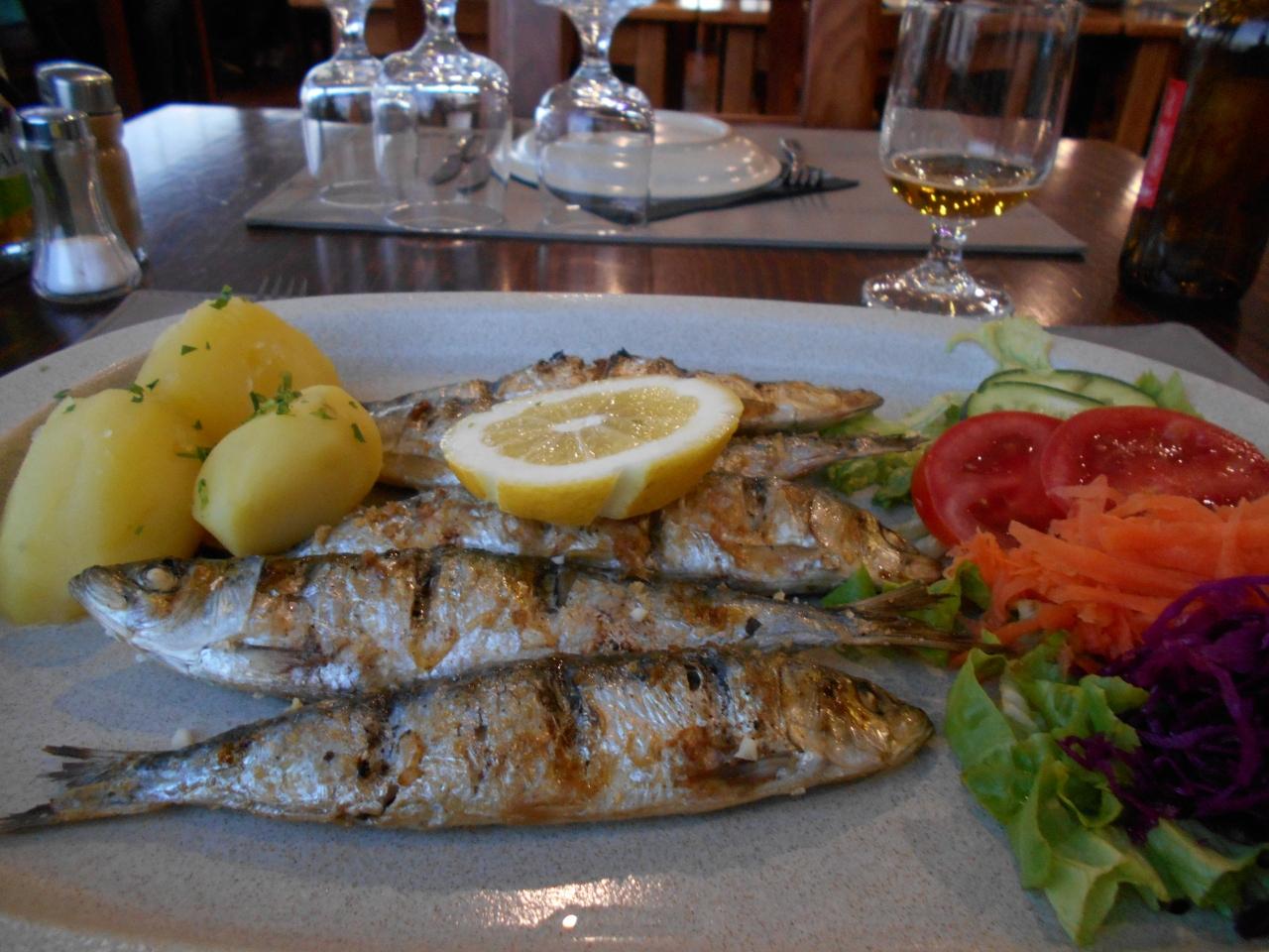 最果ての地で何をメインに食すか迷いましたが,アルガルヴェ地方ということで,名産のイワシの炭焼きにトライ。