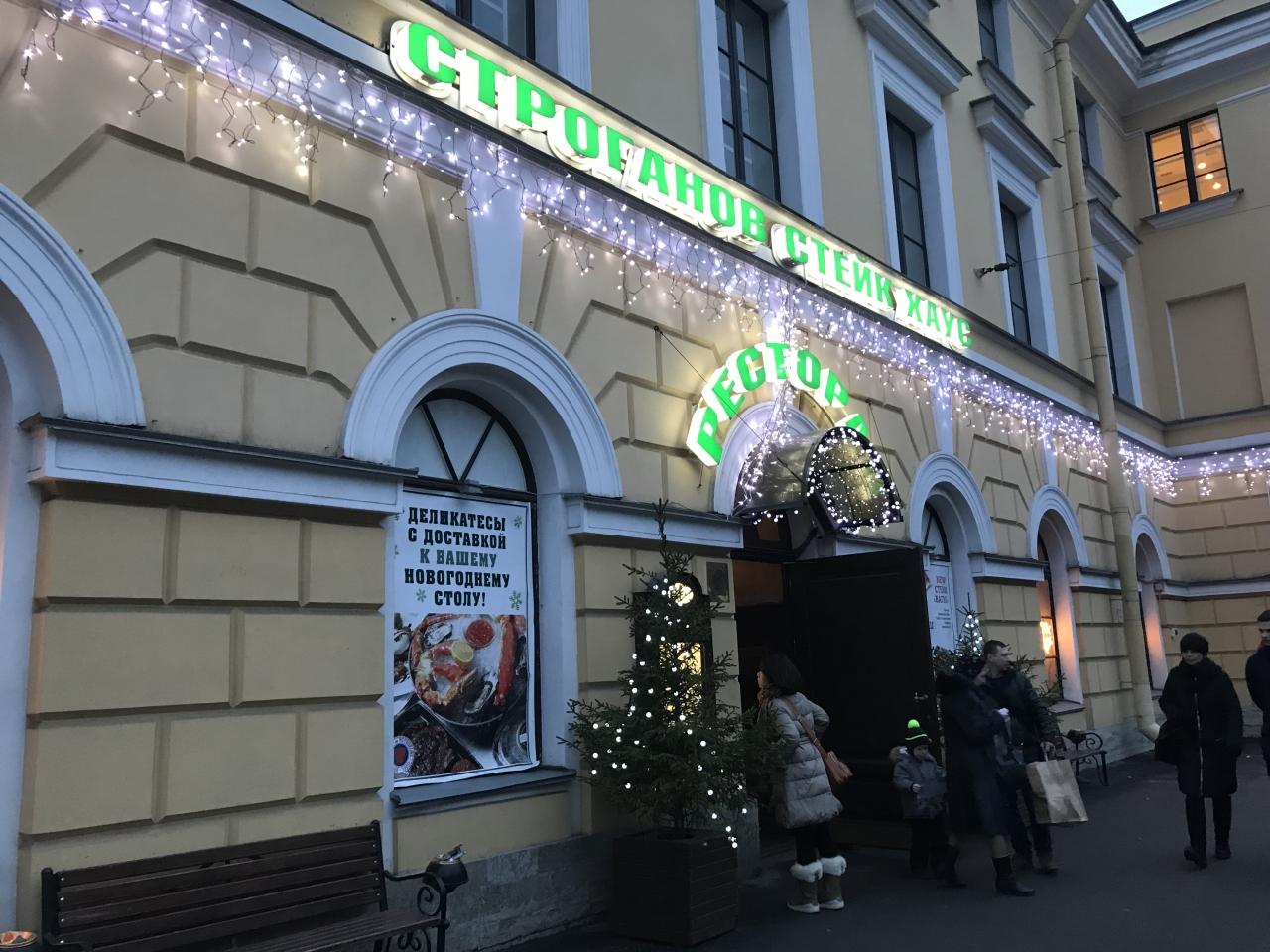そこでホテル近くのストロガノフ・ステーキハウスへ。 -