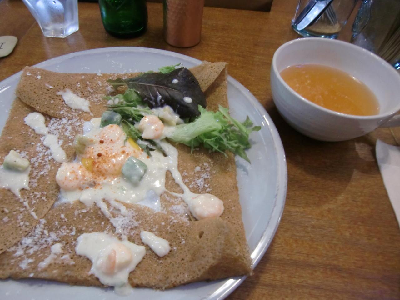 本日のランチ「えびとアボカドのクリーム煮」と「辛口シードル」。