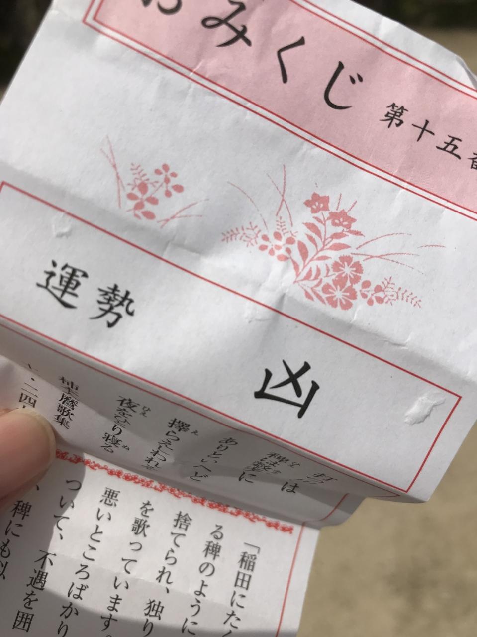 凶。‥ウケる!!!まさかの連続凶。内容自体はそんな悪いことは書かれてなかったが、なんかヘコむわぁー。