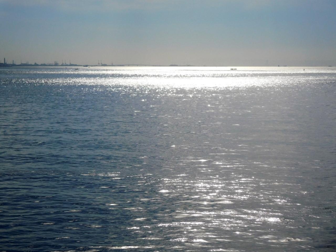 大阪方面の海が光っています。