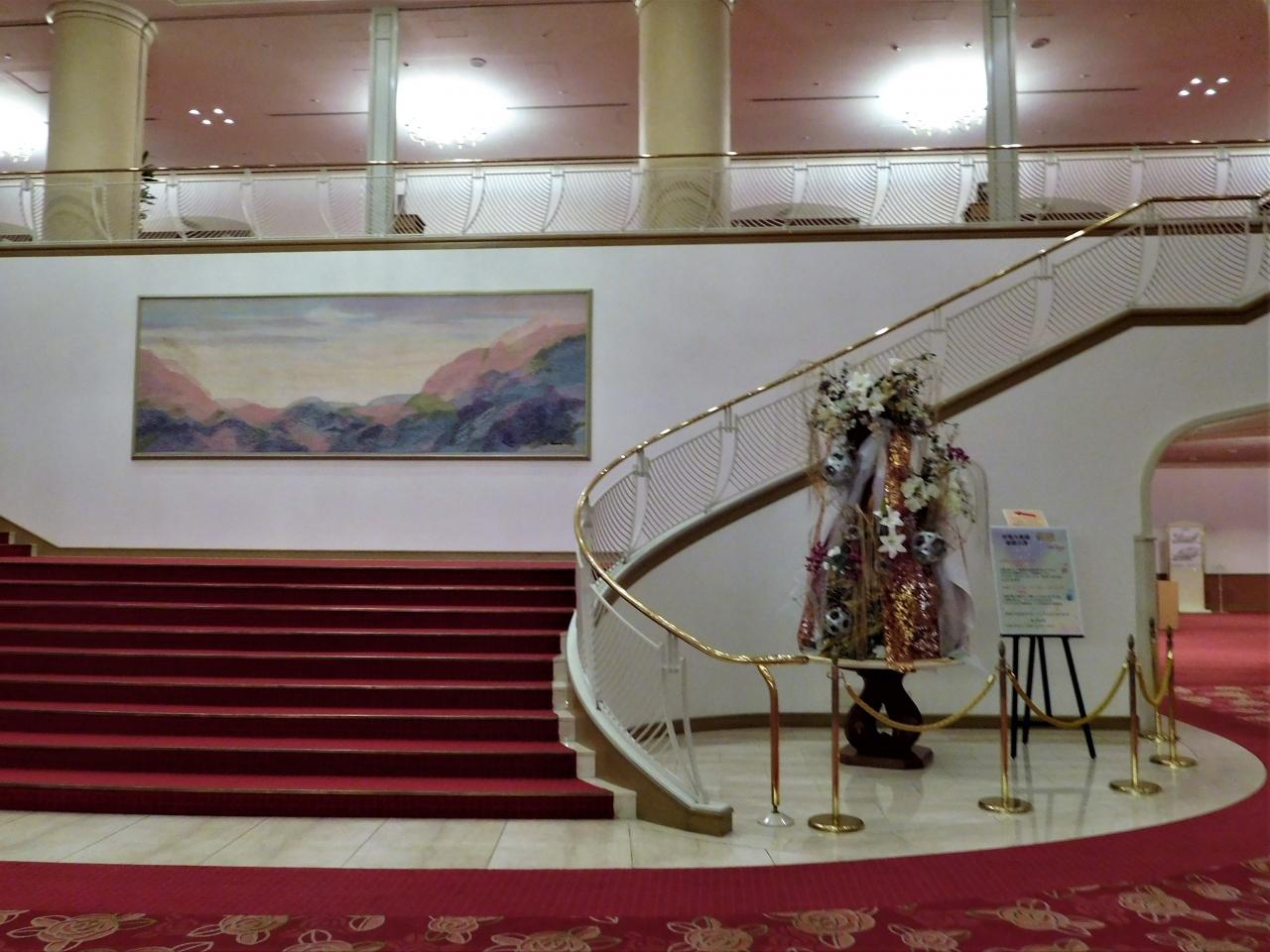 階段の右側に今の公演をイメージした飾りつけがあります。