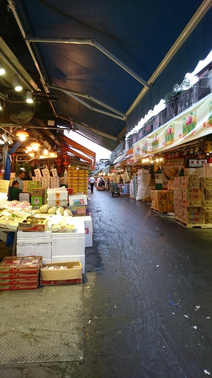 まだ準備中の果物市場にて、旅行中に食べるフルーツを物色。
