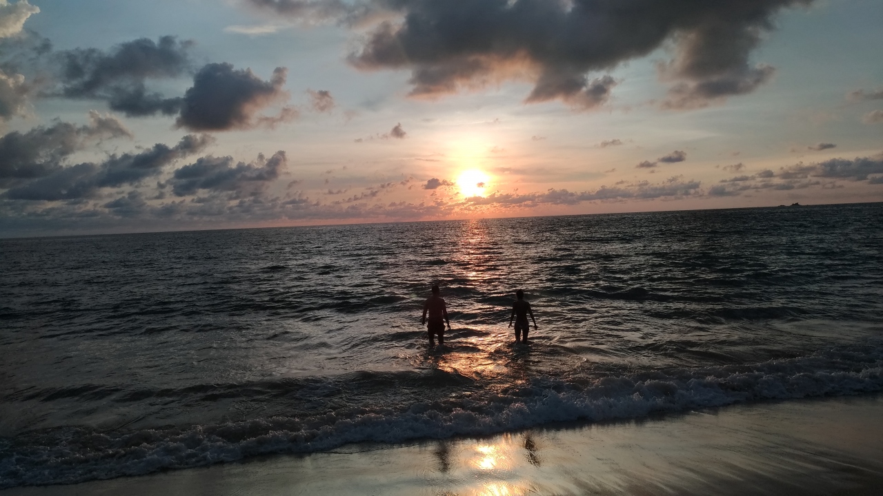 夕方になったので食事をとりにアウトリガー奥まで浜辺を歩きます