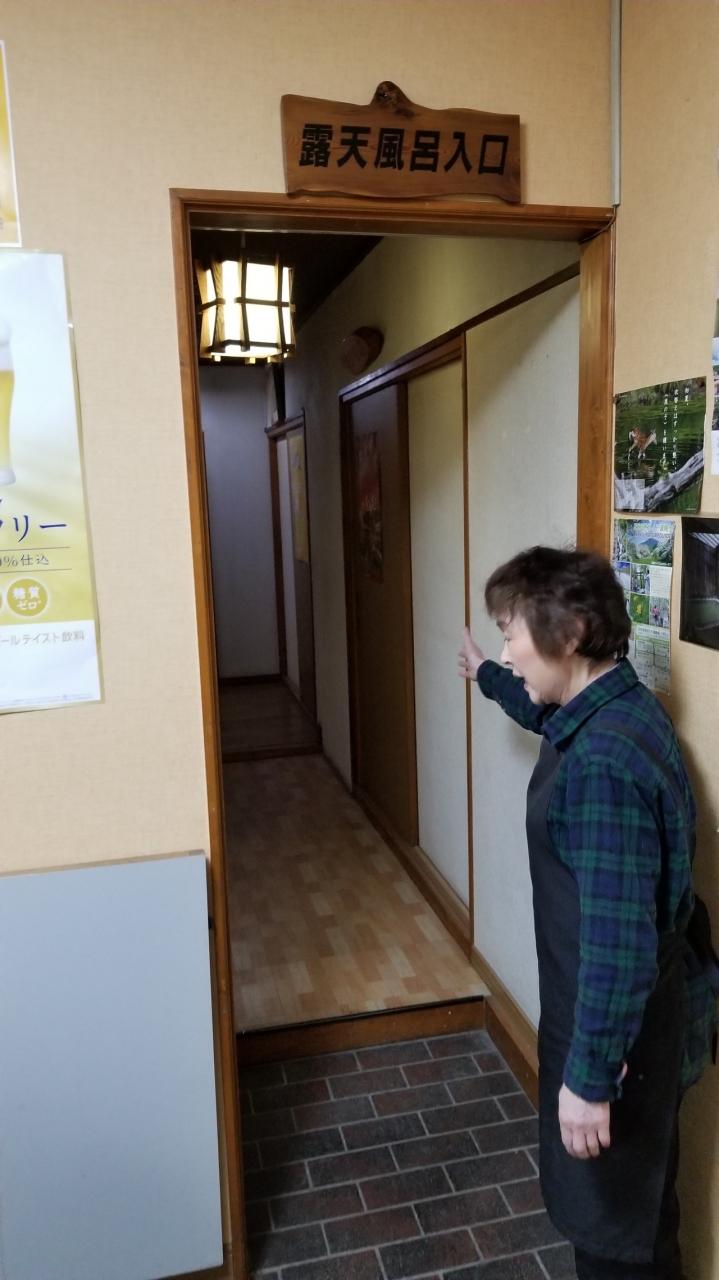 何度も見たこの光景。着替えのかごと露天風呂への出口。
