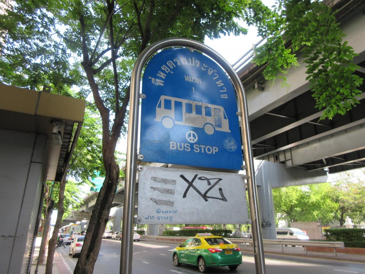 行き先をタイ語で言えないので、事前にタイ語でバス停を書いて用意しておきました。 -