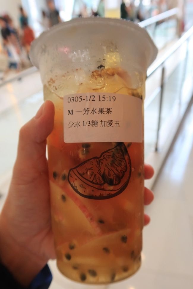 私の頼んだ水果茶。甘さと氷控えめにしてもらいました。