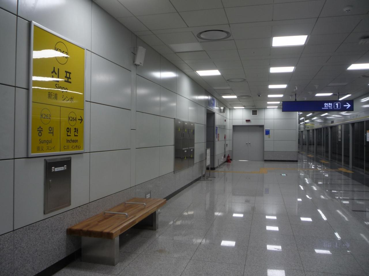 ターミナルから徒歩10分の地下鉄、新浦駅から空港へ。 -
