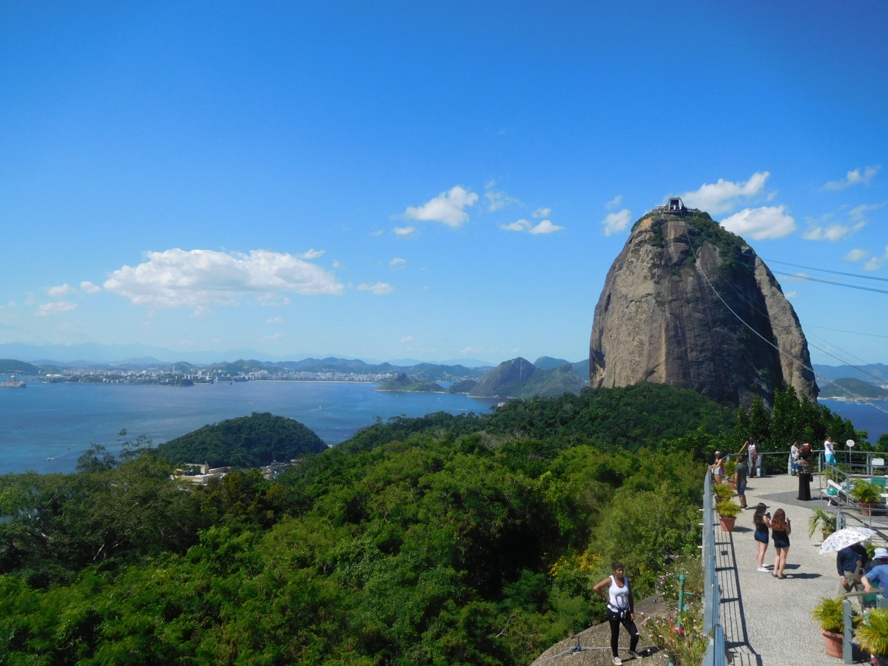 最初のロープウェイは途中のウルカの丘までです。リオデジャネイロの海岸沿いの街並みと山々の素晴らしい眺望です!