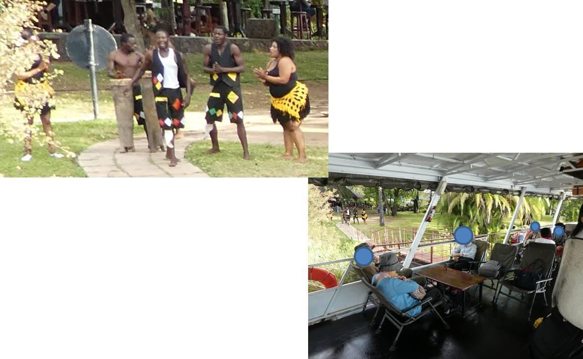 南アフリカ・ヨハネスブルグ乗り換えでザンビア・リビングストンへ。 ビクトリアフォールの国境を越えジンバブエのホテルに。荷物を預けた後、ジンバブエ側からザンビア川クルーズに。
