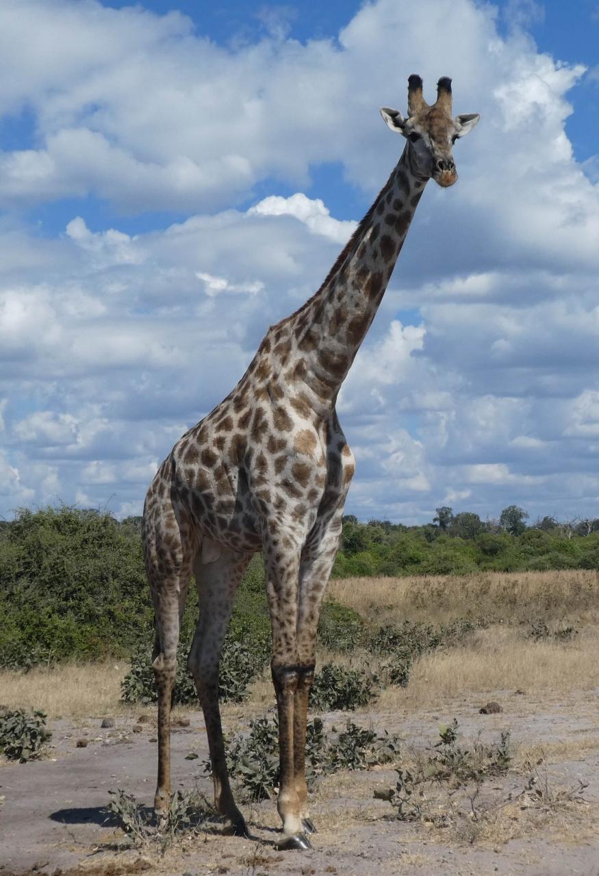 • 遠くの方から2頭近づいてきたキリン達。首が長いからか首を伸ばしたときの佇まいはナント美しい。Big5ではありませんが、チョベ国立公園で遭遇した動物の中で個人的に一番好きなのはキリン。