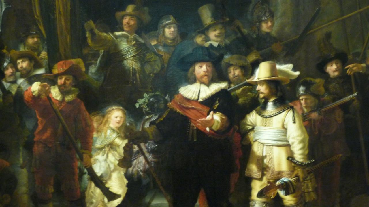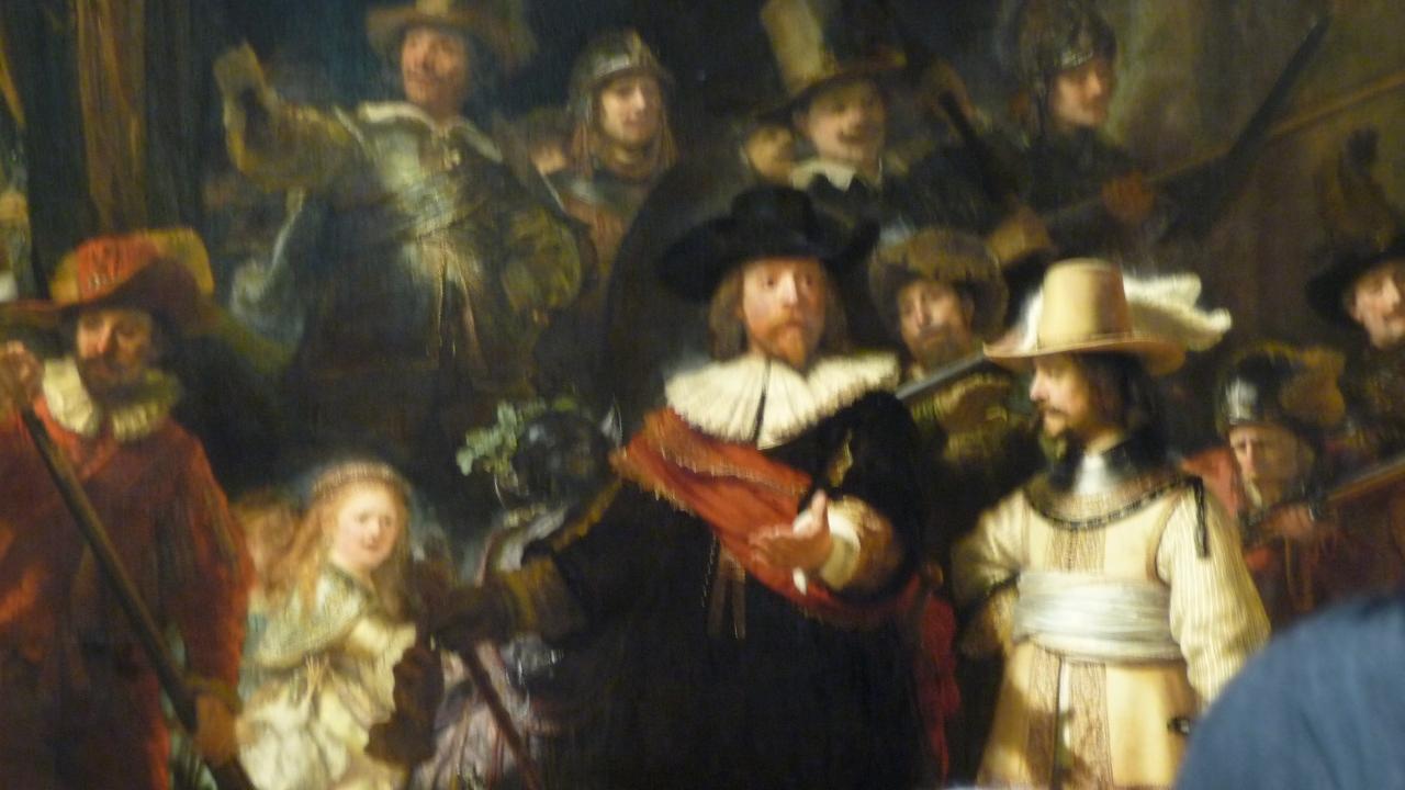 レンブラントの代表作「夜警」。思った以上に大きな絵だった(高さ3.6m、幅4.4m)。