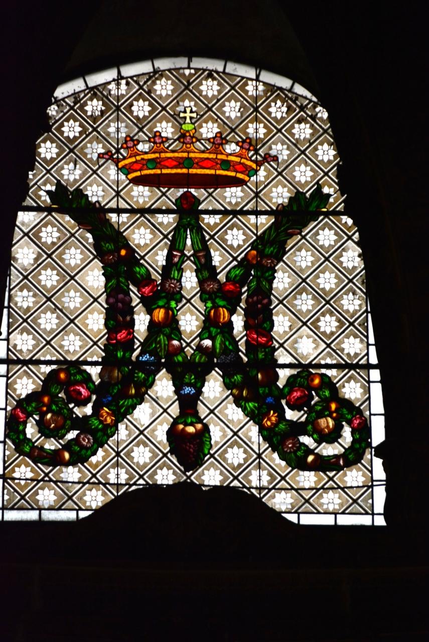 Mを彷彿させるようなステンドグラス。ナターレをイメージしているんだろうか? -