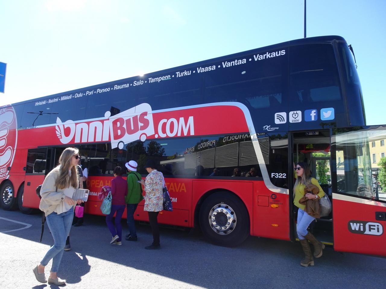 ポルヴォーに行くバスは何社かあるみたいだけど、前日インターネットで探していると、Onniバスがトイレ付き2階建てバスで、値段も安くて良いと書いてあったので、早速Onniバスのサイトから往復で予約した。