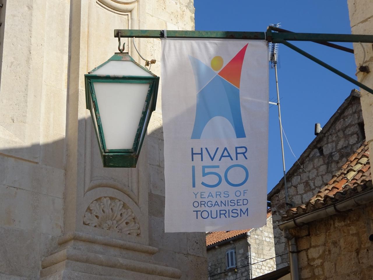 街のあちこちに旗が飾られています。観光が始まって150周年ということでしょう。 -