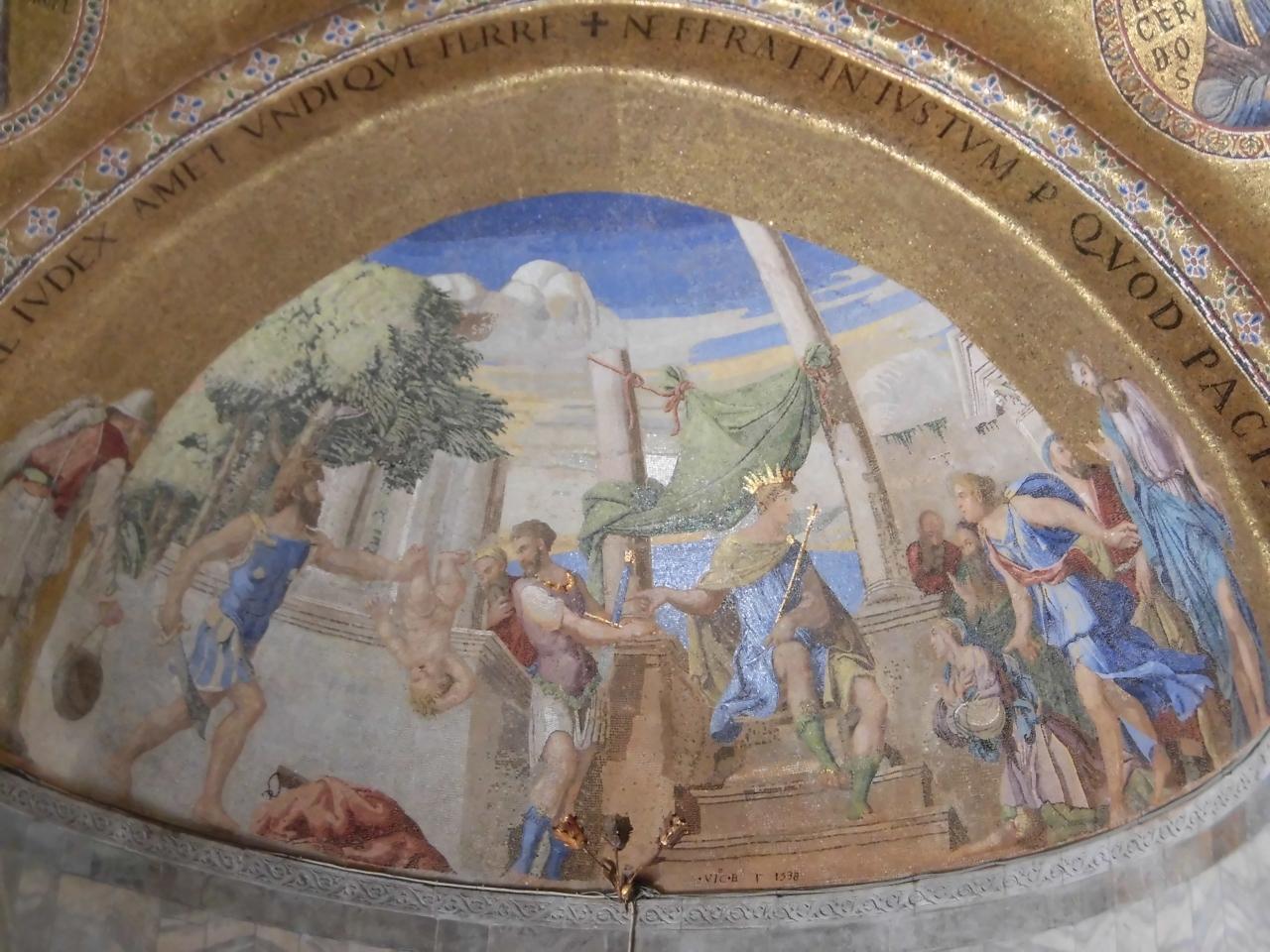 サンマルコ寺院のモザイク画はタイルではなくガラス片でできているそうです。