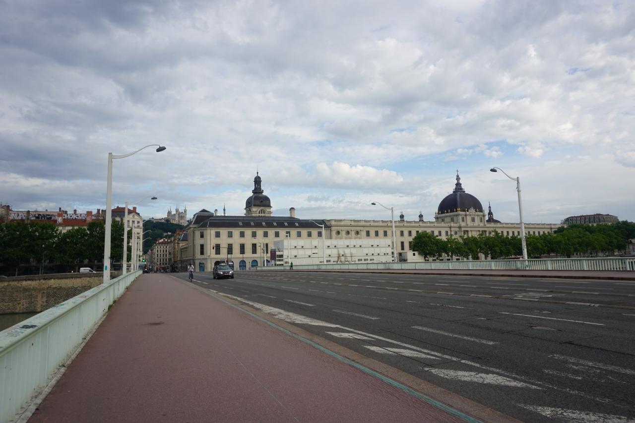 ローヌ川に架かる橋で、橋の向こうの建物は市立病院のようです。 -