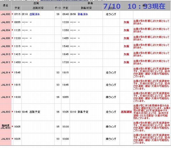 7月10日10時33分現在のJAL那覇ー羽田便の運航状況です。