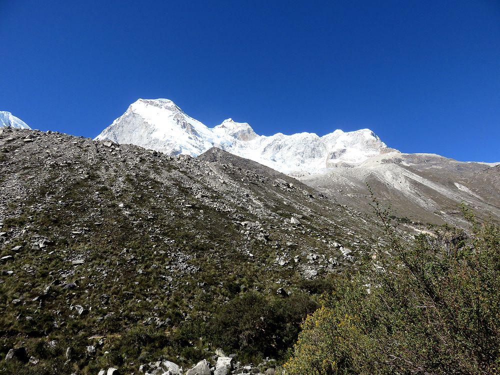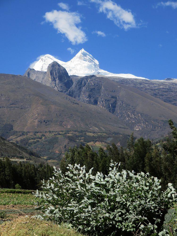 来るときも見えた山がふたたび見えてきた。前の突き出た岩峰が面白い。後ろの白い峰がHuandoy.