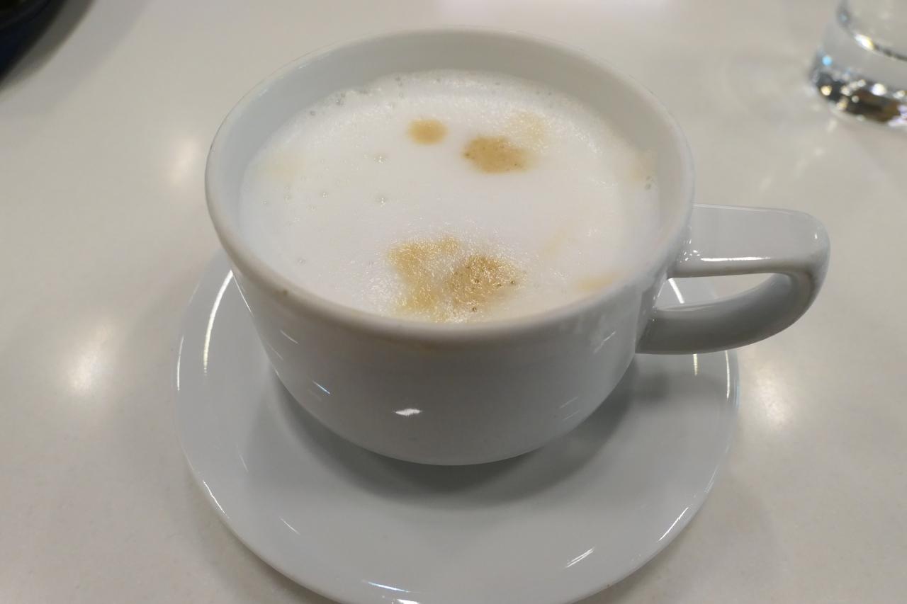 ルフトハンザラウンジでカプチーノを頂く。