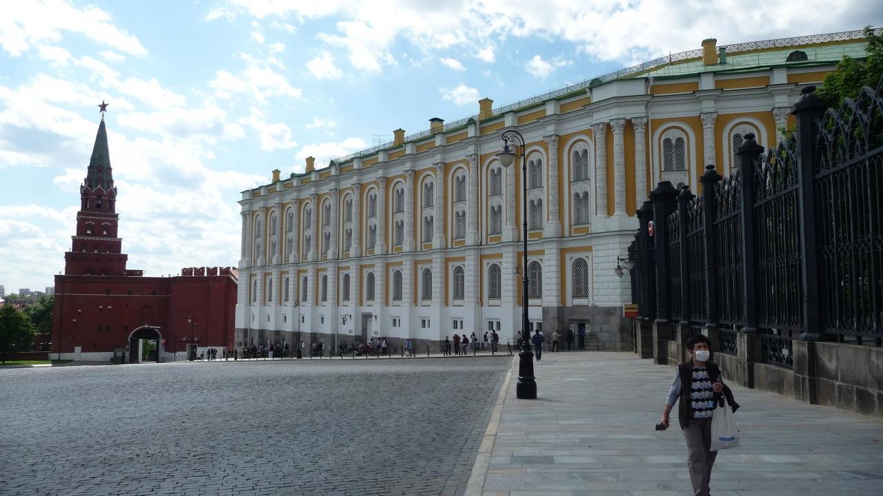3日後の6月12日はロシアの独立記念日で、その準備で赤の広場は柵で仕切られ壁の近くに行けません。クレムリン 城・宮殿