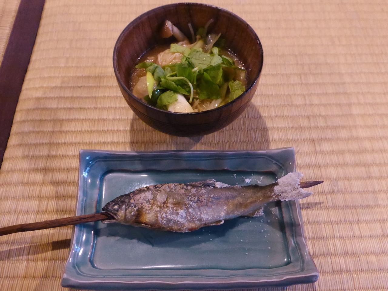 3日目は鮎塩焼き。やはり一味違い旨いです。そして山の芋鍋。