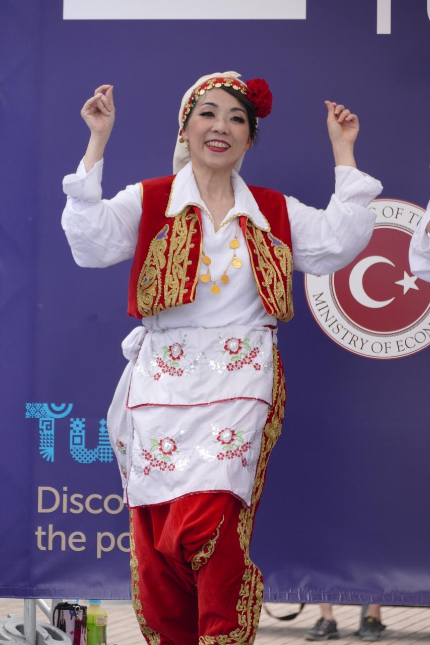 トルコの民族舞踊の紹介が始まった。日本でトルコの舞踊を学んでいるグループの皆さんで、実に楽しそうだ。