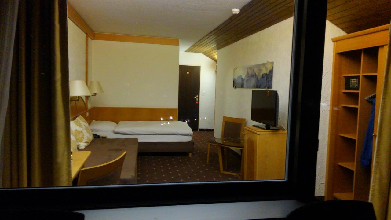 ディナーが終わって割り当てられた部屋は地下2階までエレベーターで降り、更にスロープを下り、プール脇の通路を端から端まで歩いた別館へ更に扉を開いて箱だけ上下に移動するエレベーターで4階へ上がると云う一番奥の部屋でした。でもドアを開けたら『マッターホルン』ビューでした!LUCKY!