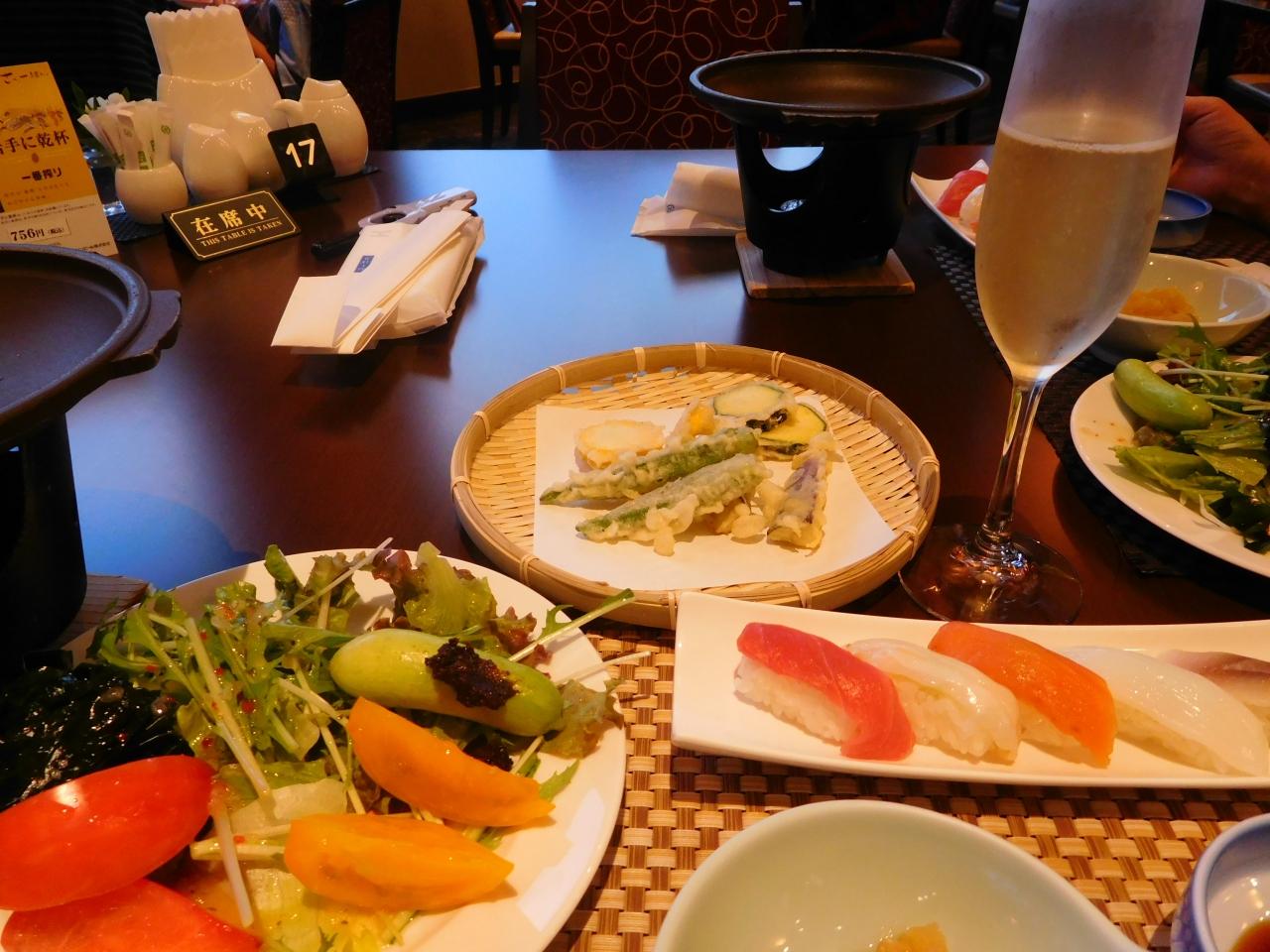 上の画像の寿司は握りたて、てんぷらは揚げたてなので美味しく頂きましたが、少々量的に物足りないかも・・・