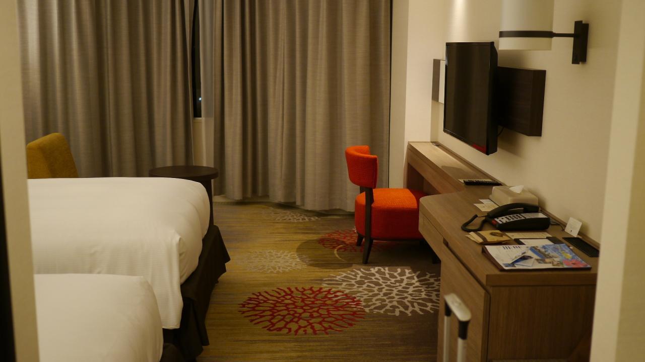 那覇着は定刻の22:15。タクシーでダブルツリーバイヒルトン那覇首里城に。