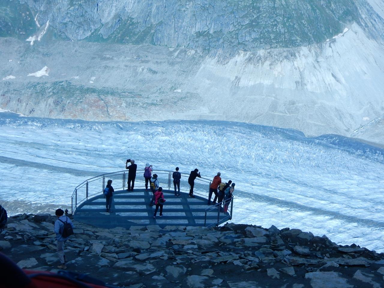 頂上駅近くには氷河の上に張り出すような展望台がある。軽装の人たちはここで眺望するようだ。