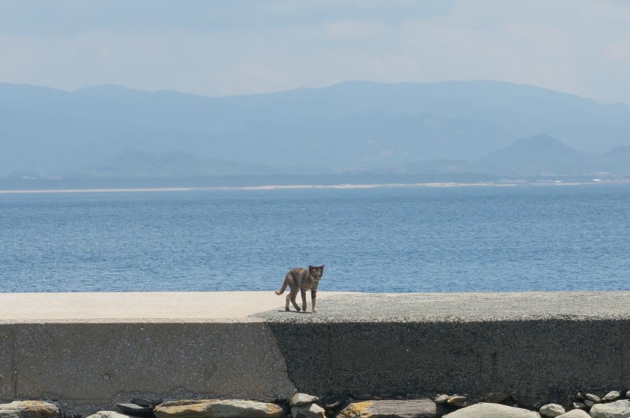 途中、小中学生が海で水泳の授業をしているのをぼんやり眺めたりしつつ、(お話をした先生によると学校にプールがないので海で授業、夏には遠泳大会もあるとのこと)猫エリアに戻ってきました。