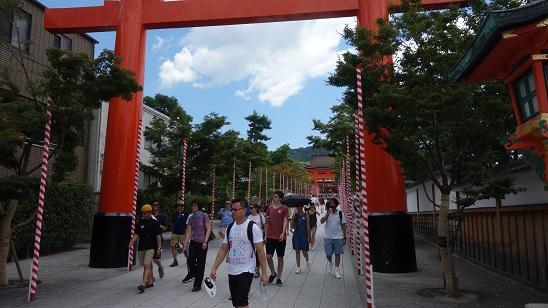 徳川家康の正室旭姫の墓と云う石柱が建っている凌雲山南明禅院という寺もこの道すがらに在るので、古くは東福寺の一部であったのかも知れません。但し旭姫には悪いのですが、次回チャンスがあったらと云うことで写真のみ押さえましょう。更に南下して民家が密集しだした所で空が広がったら、先ほど混み合っていた伏見稲荷の参道へと繋がっていた。又も渦巻きのような集団に呑み込まれそうになるが回避して先へ進みます。