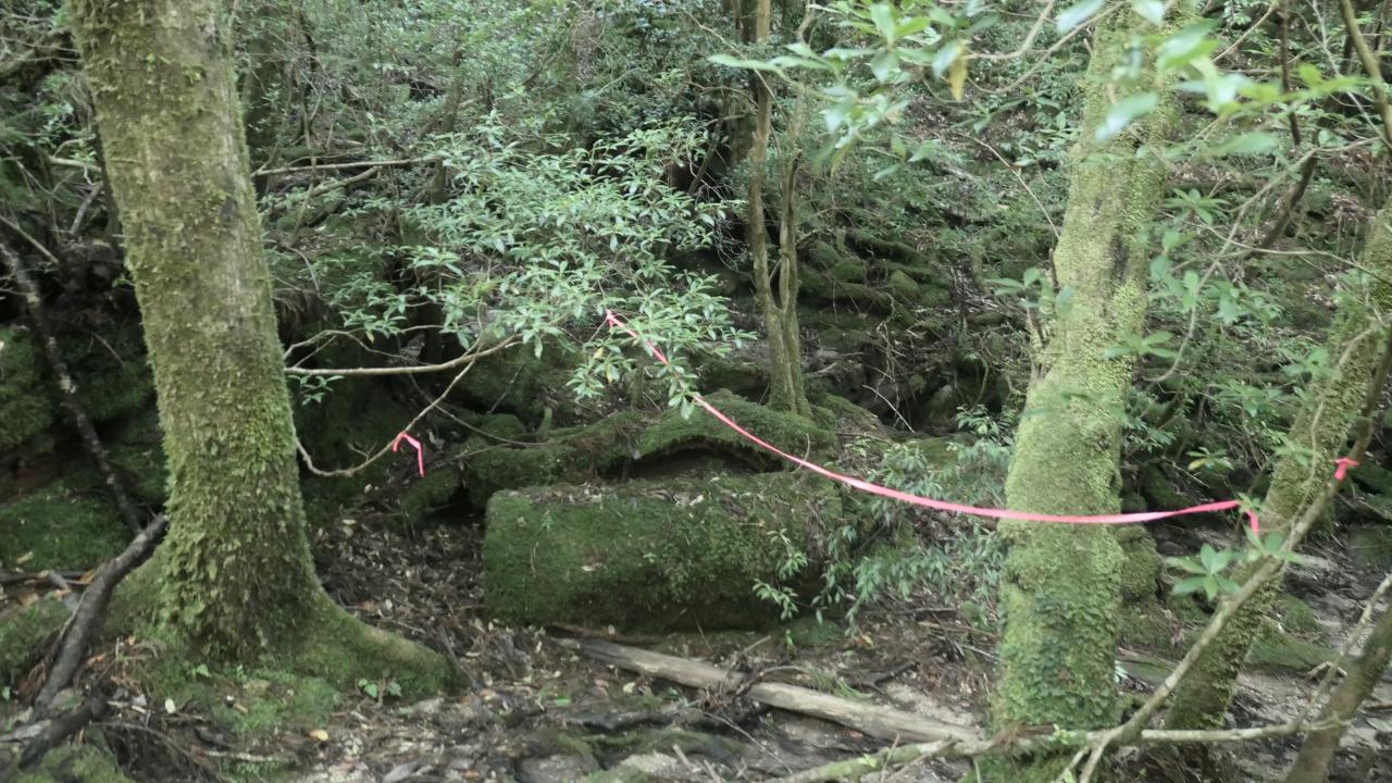 14:20 歩くのに痛みこそあるものの、平坦場場所なので、我慢できるレベルです。順調に進んで小杉谷集落跡地に到着しました。