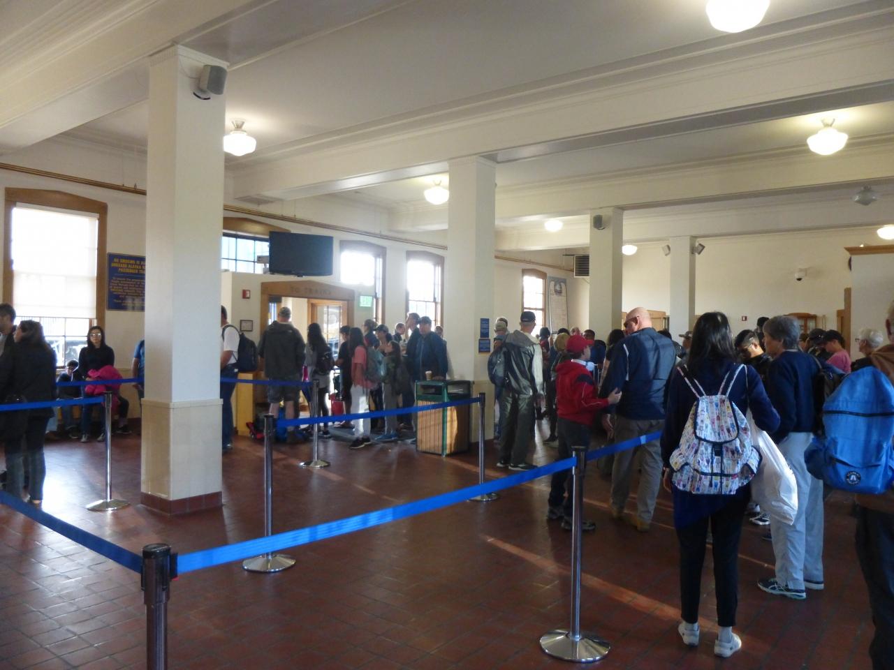 こっちは車と一緒に乗り込む方の大型のフェリーです。旅行客なのかな?アラスカの住民が多いのかも?大型キャンピングカーもどんどん船底へ乗りこんでいきました。